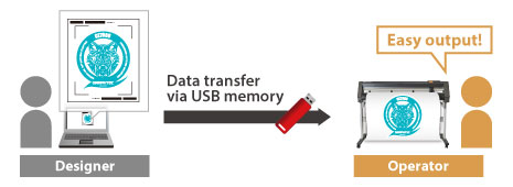 When cutting data designed with Cutting Master 4 or Graphtec Pro Studio / Plus are saved to USB flash memory, it can be output directly to the cutting plotter by plugging in. This simplified work-flow enables users to operate without a computer.